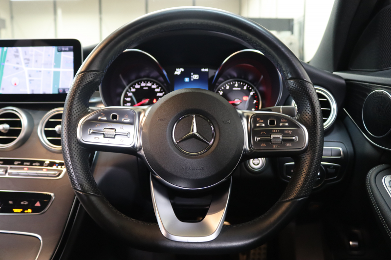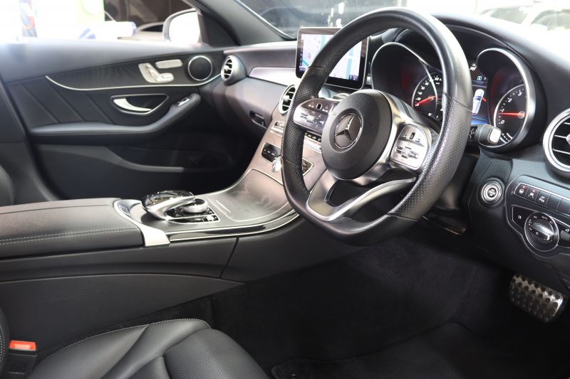 メルセデスベンツ Cクラス C200ステーションワゴン AVG AMGライン レーダーセーフティPKG BSG搭載 後期 キーレスゴー 黒革 HDDナビTV スマホ連携 バックカメラ PTS LEDライト 自動Rゲート AMGエアロ&18AW ダイナミックS エアサス 9AT 2年保証