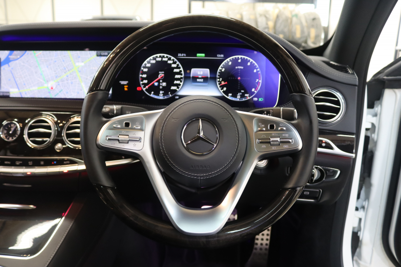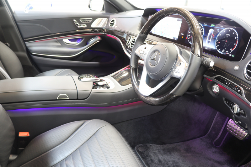 メルセデスベンツ Sクラス S450ロング AMGライン+ レーダーセーフティPKG ISG搭載 後期 キーレスゴー 黒本革 ベンチレーター パノラマSR ヘッドアップD HDDナビTV スマホ連携 ブルメスター 360カメラ PTS LEDライト ハンズフリーA AMGエアロ&20AW クロージングSP エアサス 9AT 2年保証