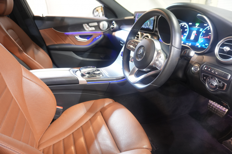 メルセデスベンツ Cクラス C200 ワゴン ローレウスED レザーEXC スポーツプラス&レーダーセーフティPKG BSG搭載 後期 茶革 シートヒーター ベンチレーター 純正ナビ フルセグTV CarPlay HUD Burmester 360カメラ マルチビームLED エアサス ワイヤレスチャージング AMGエアロ&18インチAW 2年保証
