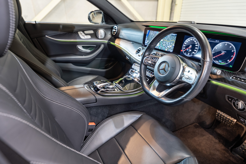 メルセデスベンツ Eクラス E200 ステーションワゴン AVG AMGライン エクスクルーシブ&レーダーセーフティPKG 中期モデル BSG搭載 黒革 シートヒーター 純正ナビTV CarPlay ヘッドアップD 360カメラ ブルメスター エアバランスP マルチビームLED AMGエアロ&19AW 2年保証