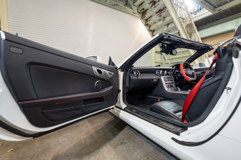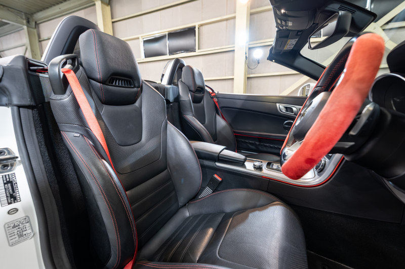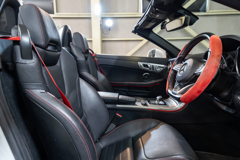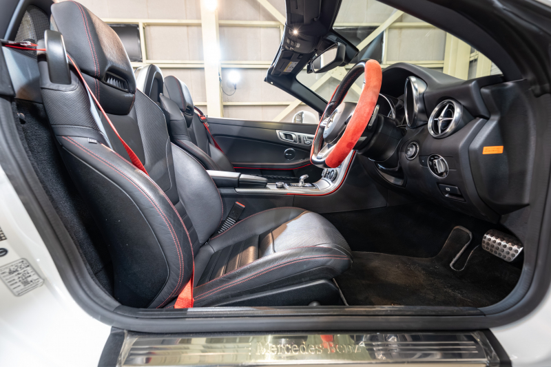 メルセデスベンツ SLCクラス SLC200 スポーツ レーダーセーフティPKG 黒革 シートヒーター エアスカーフ パノラミックバリオルーフ 純正ナビ フルセグ カープレイ Bカメラ harman/kardon AMGスポーツステアリング LEDライト アンビエントライト Pスタ AMGエアロ&18インチAW 2年保証
