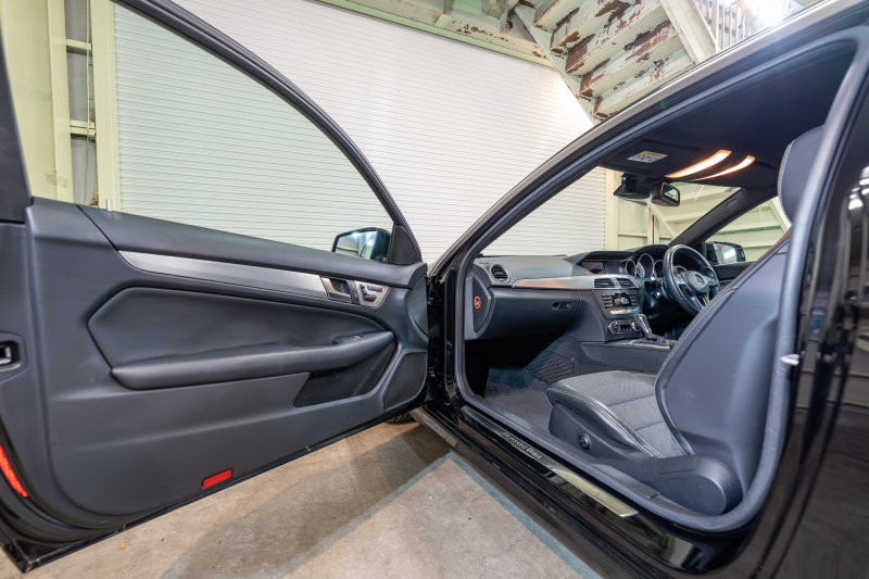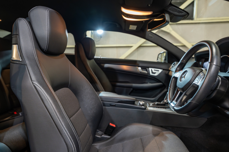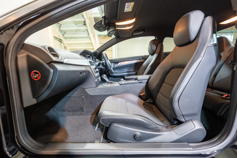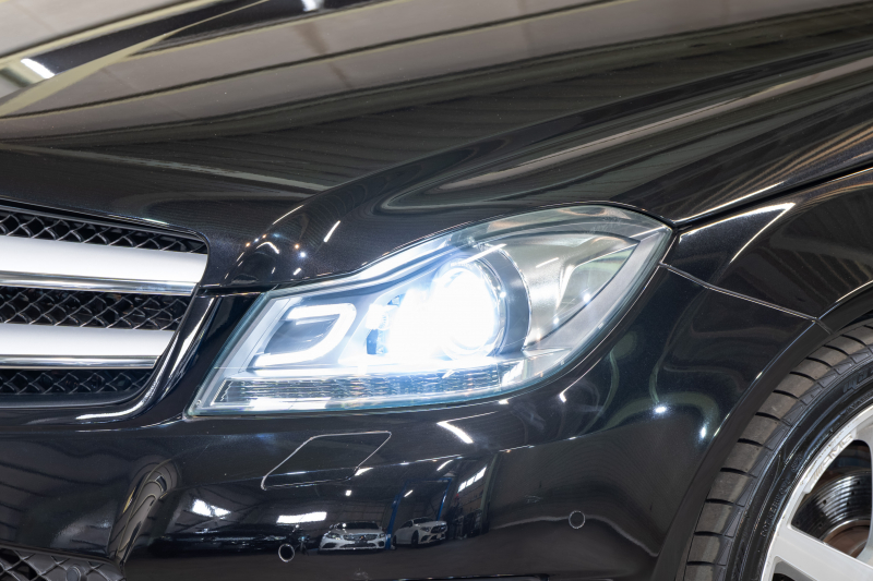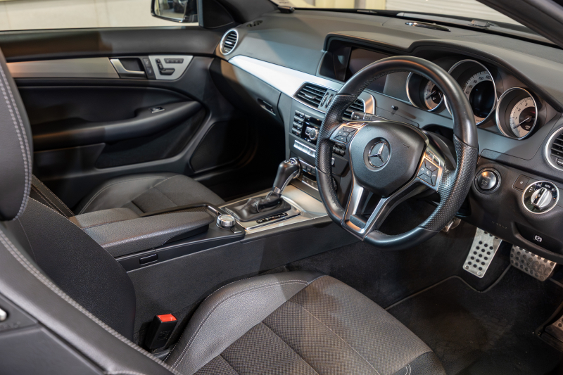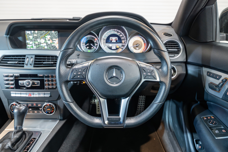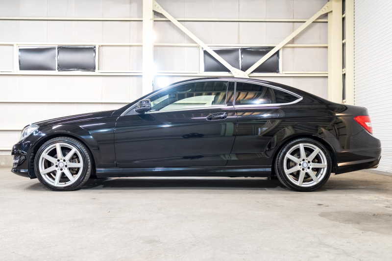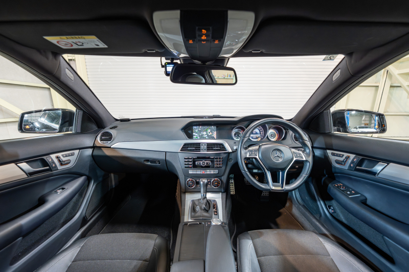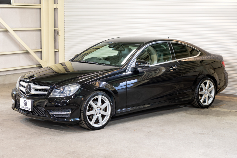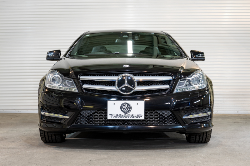 メルセデスベンツ Cクラス C180クーペ レーダーセーフティ&ユーティリティPKG 黒半革 純正ナビTV Bカメラ パークトロニック キセノン LEDドライビングライト Pスタ AMGエアロ&18AW ドリルドローター ロゴ入キャリパー 2年保証