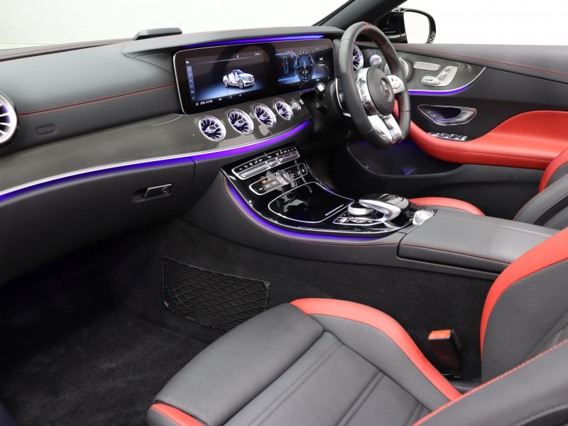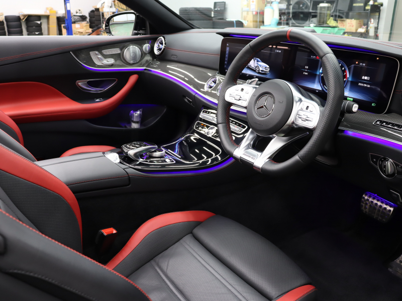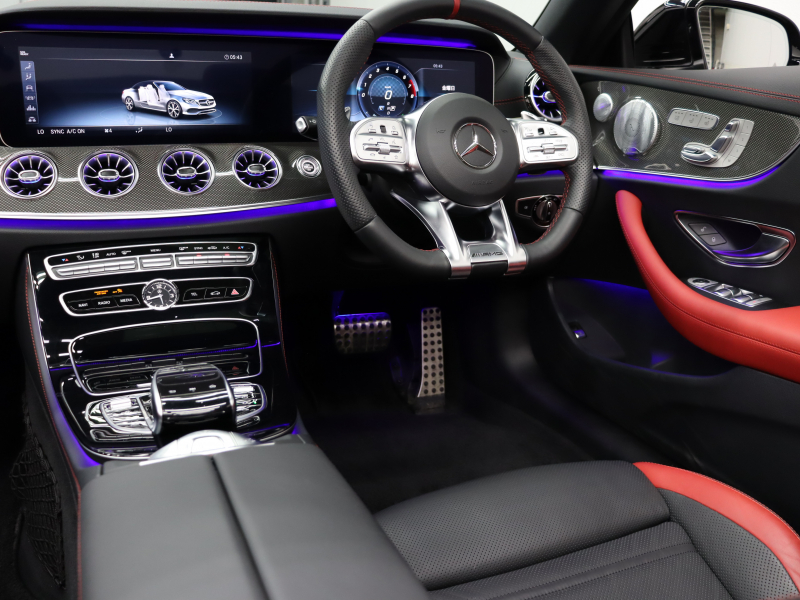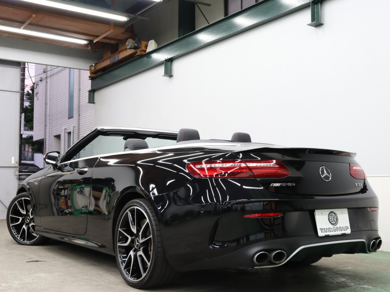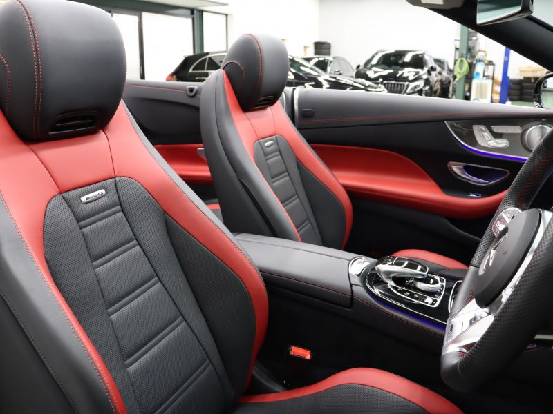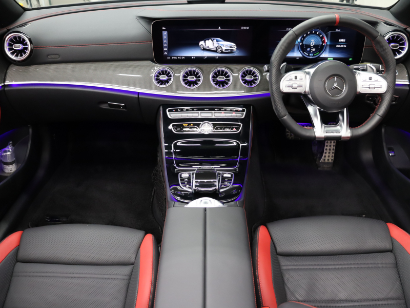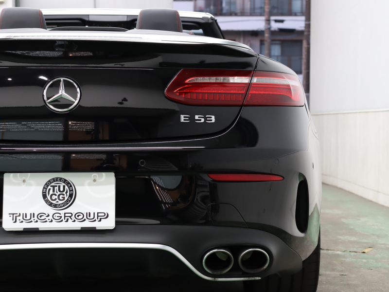 AMG Eクラス E53 4MATIC+ カブリオレ エクスクルーシブPKG 1オーナー 黒/赤革 赤幌 ベンチレーター ナビTV 360カメラ ブルメスターS Carplay AMGスポーツサスペンション AMGエグゾーストシステム AMGパフォーマンスステアリング 専用エアロ&20インチAW(ハイグロスブラック) 2年保証