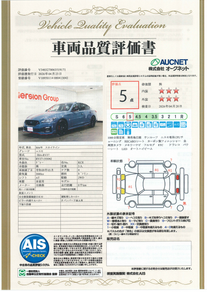 【AIS車両品質評価書付】