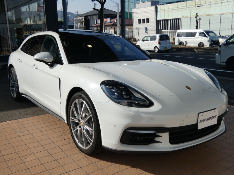 使い勝手の良いスポーツツーリスモ&4WDモデル!! 安心の正規ディーラー車、右ハンドル!! 取説・記録簿付 もちろん事故歴ありません!! 綺麗な外装色ホワイトに純正パナメーラエクスクルーシブデザイン21インチアルミホイール&LEDヘッドライトが装備され迫力あるエクステリアを演出!! 使用感の少ない心地よい禁煙の室内は鮮やかなブラックレザーインテリアに快適なシートヒーターやスポーツツーリスモならではの開放感有るパノラミックスライディングルーフが完備!! 更には4ゾーンAC&BOSEサウンドシステム等豪華装備満載!! 高解像度12インチタッチスクリーンを採用したPCMナビ(ポルシェコミュニケーションマネジメントシステム)に運転操作をサポートするポルシェアクティブセーフ&LKA(レーンキープアシスト)やサラウンドビューカメラ付き!! 440馬力を誇る2.9L V型6気筒ターボエンジン&4WDシステム&PASM付アダプティブエアサスペンションが相まって言葉に尽くせないドライビングの醍醐味を堪能することができます!!