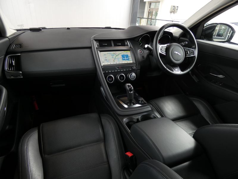 ジャガー E-PACE S 2.0L D180 黒革 セレクトパック ブラックパック ACC LEDヘッドライト 純正ナビ 地デジ インタラクティブドライバーディスプレイ 360°カメラ シートヒーター AppleCarPlay ステアリングヒーター ヘッドアップディスプレイ 電動リアゲート 純正19AW 禁煙 右H 1オナ 下取車 正規D車