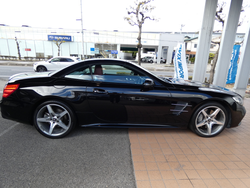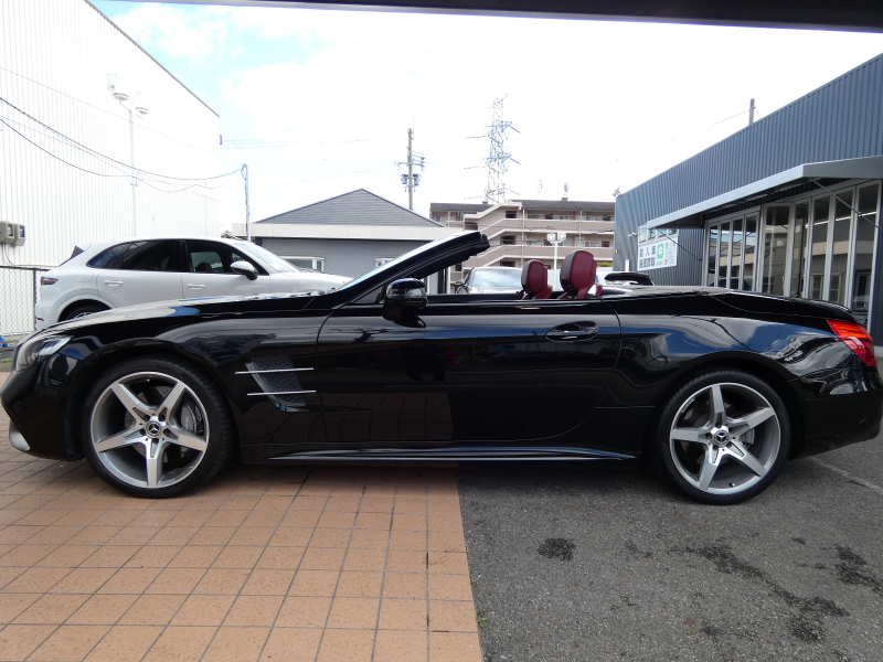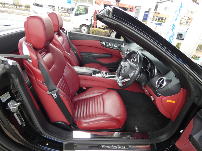 メルセデスベンツ SLクラス SL400 レーダーセーフティPKG 赤ナッパ革 パノラミックバリオルーフ LED アクティブボディコントロールサスペンション 純正HDDナビ地デジBカメラ AppleCarPlay シートヒーター ベンチレーター エアスカーフ AMG19AW 禁煙 下取車 右H 正規D車