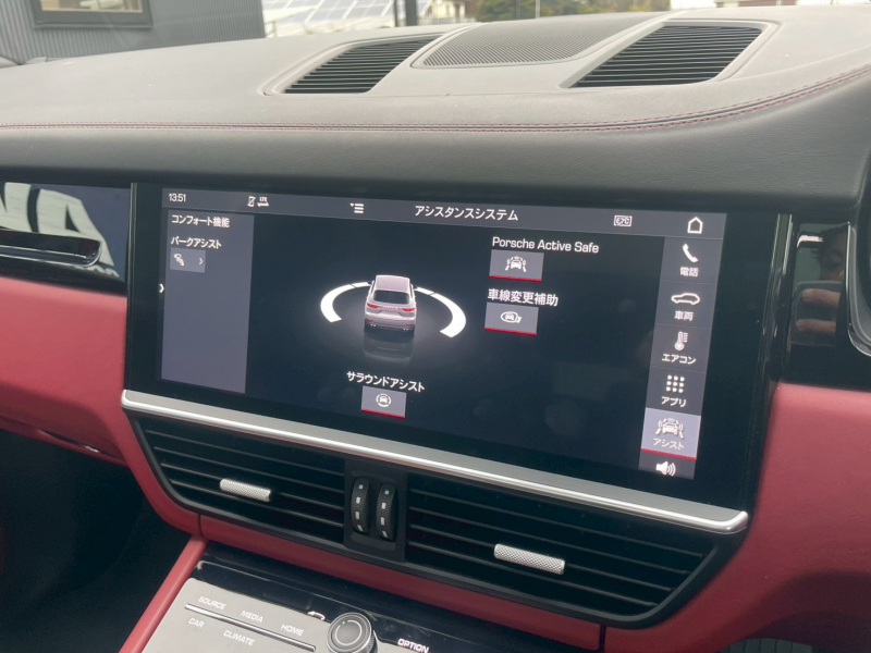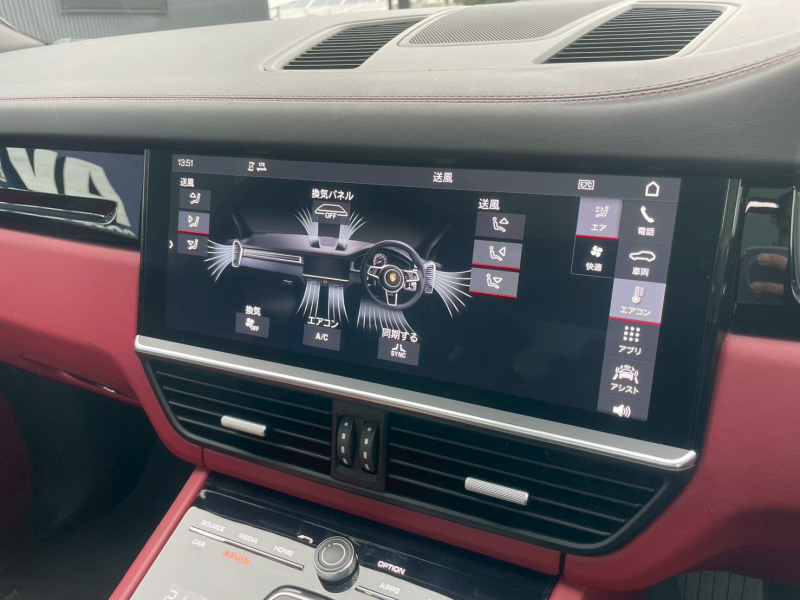 ポルシェ カイエン ベースグレード レザーインテリア PorscheActiveSafe パノラマSR 赤革 PCMナビ AppleCarPlay 全周カメラ ACC 前後ソナー パワーシート シートヒーター LCA E/D パワートランク LEDライト RSスパイダー21AW