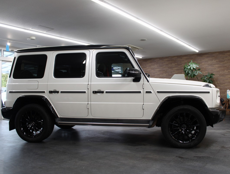 安心のワンオーナー、右ハンドル・正規ディーラー車!! 取説・記録簿付 事故歴ありません!! 美しい外装色ダイヤモンドホワイトに随所にブラックアクセントが施されたマヌファクトゥ―アED専用エクステリア&専用ブラックペイント20インチアルミホイールが装備され特別仕様車ならではのお洒落なエクステリアを演出!! SUV特有の使用感はとても少なく禁煙の室内は高級感溢れるブラックナッパレザーシートに全席シートヒーター、開放感あるガラススライディングルーフ付!! 特別仕様車ならではのシートヒータープラス&ベンチレーター、シートリラクゼーション機能を備え、さらにはアダプティブダンピングシステムにより快適な乗り心地を実現!! 現行型より採用の12.3インチワイドディスプレイに純正ナビゲーション・地デジ・Bluetoothオーディオ、心地よいサウンドを楽しめるBurmesterサラウンドも完備!! レーダーセーフティパッケージや360°カメラシステム&パークトロニックが安全運転を全面的にサポートし事故を未然に防いでくれます!! 直列6気筒ディーゼルターボエンジン&9速ATによりストレスの無いドライビングと快適な乗り心地を実現!! 特別仕様車G350dマヌファクトゥ―アエディションをお探しの方、是非この機会をお見逃しなく!!