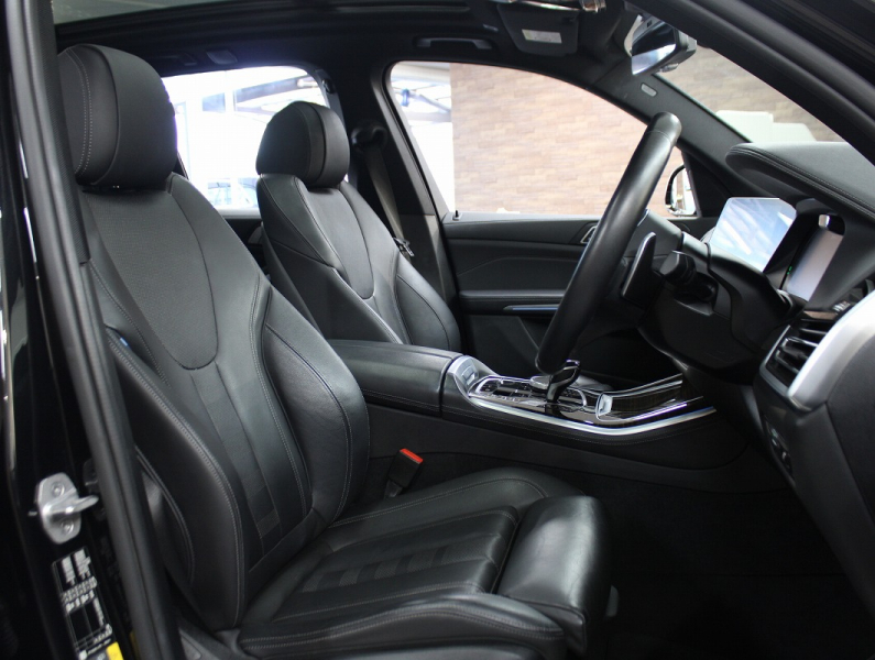 取説・記録簿付 事故歴ありません!! 人気外装色ブラックサファイアにMスポーツ専用エクステリア&オプション21インチアルミホイールが迫力のエクステリア!! SUV特有の使用感はとても少なく心地よい禁煙の室内は高級感あるブラックレザーシートに快適な全席シートヒーターとプラスパッケージならではの4ゾーンエアコンや保冷・保温機能付カップ・ホルダーが充実の装備内容!! 視認性の高い12.3インチライブコクピットに使い勝手の良いコンフォートアクセス&ソフトクローザー&オートマチックテールゲート付!! またパーキングアシストプラスやドライビングアシストプロフェッショナルが安全運転を全面的にサポート!! DOHC直列6気筒ターボエンジン+モーターが卓越したパワーとレスポンスを実現し電子制御8速AT&アイドリングストップ機構が燃費向上を実現!! 実用性と先進性を兼ね揃えた人気車輌をお届け致します!!