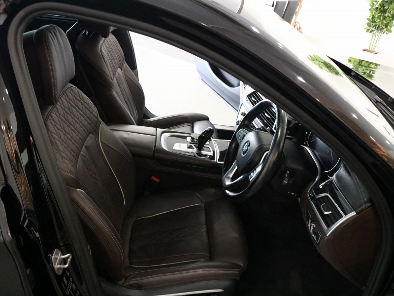 ワンオーナー 取説・記録簿付 事故歴ありません!! 人気の外装色ブラックサファイアにMスポーツ専用エクステリア&専用20インチアルミホイール、BMWレーザーライトが迫力有るエクステリアを演出!! 使用感はとても少なくロングボディならではの広々とした室内はお洒落なモカナッパレザーシートに全席シートヒーター&ベンチレーター、4ゾーンエアコンが装備されロングボディならではのリアコンフォートシート&アクティブベンチレーションシート、リアシートエンターテイメントシステムが標準装備!! 使い勝手の良いタッチパネル&ジェスチャーコントロール付純正HDDナビにディスプレイキー&リモートパーキング、harman/kardonサウンド、ヘッドアップディスプレイ、3Dビューカメラ、ドライビングアシストプラスが標準装備されフラッグシップサルーンに相応しい豪華装備満載です!! DOHC Ⅴ型8気筒ツインターボチャージャーエンジンと電子制御8速スポーツATにより言葉に尽くせないドライビングの醍醐味を堪能することができます!! 7シリーズ、ロングボディをお探しの方は是非お急ぎ下さい!!