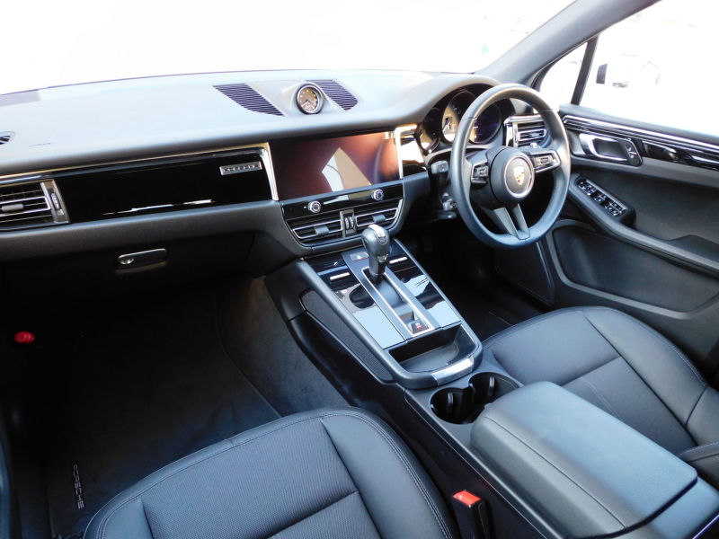 ポルシェ マカン 現行型 新型エンジン搭載 右H正規D車 黒半革 シートヒーター 3ゾーンAC PCMナビ(10.9インチ) 全周C&PAS ACC&LCA&LDW LEDヘッドライト(PDLS付) エントリーD コンフォートA 電動Rゲート 純正20AW 禁煙 新車保証継承可