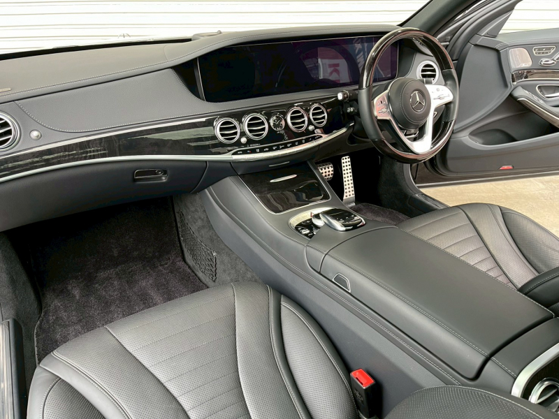 安心の右ハンドル、正規ディーラー車!! 取説・記録簿付 事故歴ありません!! 人気の外装色オブシディアンブラックに迫力有るAMGラインプ専用エクステリア&プラス専用20インチAW!! 使用感はとても少なくロングボディならではの広々とした室内は高級感漂うブラックナッパレザーシート(ドライビングダイナミックシート・リラクゼーション機能付)にパノラミックスライディングルーフや全席シートヒーター&ベンチレーター、4ゾーンエアコン、Burmesterサウンドシステム、さらにはショーファーパッケージならではのリアエンターテイメントシステム、各アームレストヒーター、フットレスト付エグゼクティブリアシート上級サルーンに相応しい同乗者も快適なドライビングをご堪能できます!! 使い勝手の良い純正HDDナビに360°カメラ&ヘッドアップディスプレイや運転操作をサポートするレーダーセーフティパッケージも装備!! 4L V型8気筒ツインターボエンジンと9G-TONICがフラッグシップサルーンに相応しい走行性、環境・燃費性能を実現しています!! 実用性と先進性を兼ね揃えた人気車輌をお届け致します!!