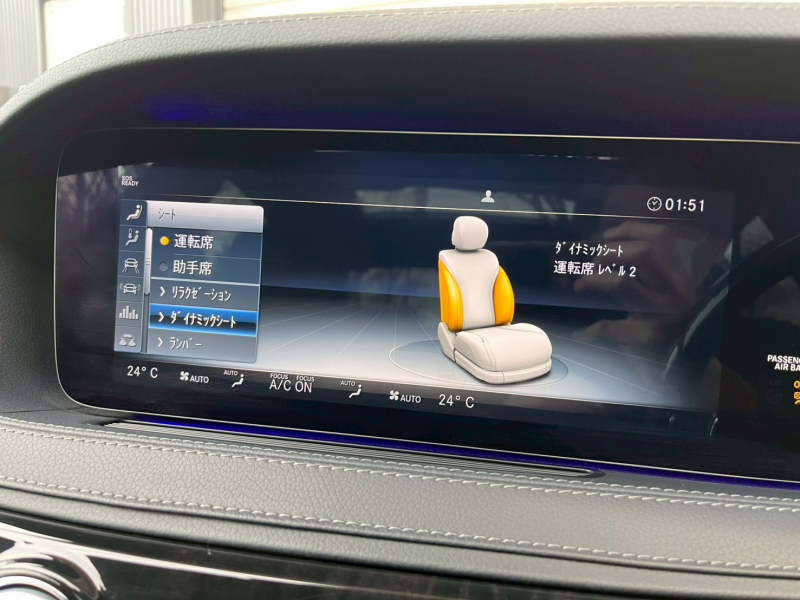 フル装備 ABS BAS ESP SRSエアバッグ AIRマティックサスペンション AMGライン専用エクステリア 専用20インチアルミホイール パノラミックスライディングルーフ ブラックナッパレザーシート メモリー付パワーシート 全席シートヒーター&ベンチレーター 全ドアアームレストヒーター センターアームレストヒーター マルチコントロールシートバック ドライビングダイナミックシート リラクゼーション機能 電動シートバック 助手席コントロール機能 ショーファーポジションスイッチ フットレスト付エグゼクティブリアシート 後席専用クライメートコントロール 電動ブラインド(リア&後席左右) ブラックハイグロスポプラウッドインテリア LEDインテリジェントライトシステム マルチビームLED(ウルトラハイビーム付) アダプティブハイビームアシストプラス LEDコーナリングライト タッチパッド付COMANDシステム 純正HDDナビ・SDカードスロットル・USB・Bluetoothオーディオ&ハンズフリー機能・Apple CarPlay&Android Auto・地デジ・ETC Burmesterサウンドシステム リアエンターテイメントシステム COMANDリモートコントロール 360°カメラ&パーキングアシストリアビューカメラ パークトロニックセンサー アクディブパーキングアシスト リモートパーキングアシスト アテンションアシスト ヘッドアップディスプレイ クルーズコントロール レーダーセーフティパッケージ【アクティブディスタンスディストロニック・アクティブステアリングアシスト(アクティブレーンチェンジアシスト・エマージェンシーストップアシスト)・PRE-SAFインパルス&サウンド・緊急回避補助システム・渋滞時緊急ブレーキ機能・アクティブブラインドスポットアシスト・アクティブレーンキーピングアシスト・PRE-SAFEプラス・トラフィックサインアシスト】 クロスウインドウアシスト エアバランスパッケージ アンビエントライト(64色) クロージングサポーター(ドア・トランクリッド) 自動開閉テールゲート(フットトランクオープナー) 電動格納ミラー 電動チルト&テレスコピック マルチファンクション付本革巻ウッドステアリング ステアリングヒーター DOHC V型8気筒ツインターボチャージャー 電子制御9速AT DYNAMIC SELECT パドルシフト ECOスタート/ストップ イモビライザーエレクトロニックキー キーレスゴー レインセンサー 右ハンドル 正規ディーラー車