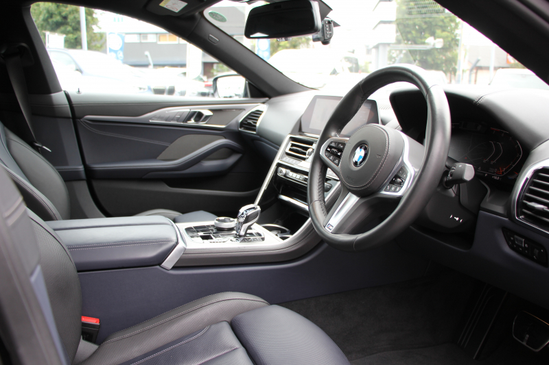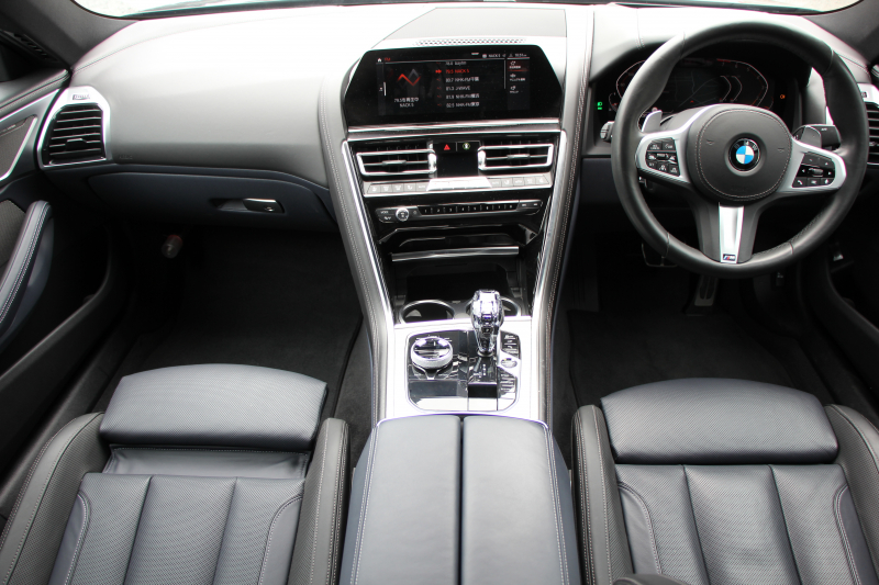 BMW 8シリーズ 840i グランクーペMスポーツ パノラマサンルーフ indiviメリノレザー ナイトブルー&ブラックレザー レーザーライト オプション20AW ハーマンカードンサウンドクリスタルフィニッシュ 360度カメラ 追従ACC HUD 全席ヒーター フロントベンチレーション ソフトクローズドア 2年保証
