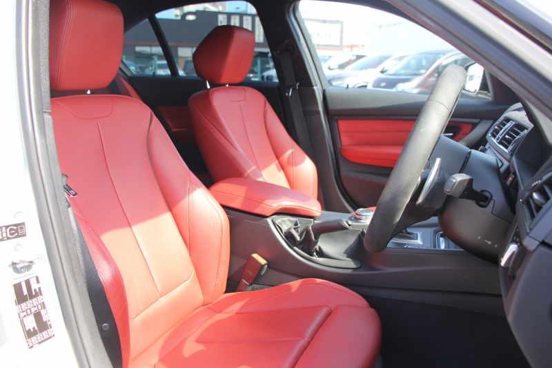 BMW 3シリーズ 320i Mスポーツ 前期最終 追従ACC ヒーター赤革 MPerformance20AW&インテリアトリム&ステアリングホイール 衝突軽減ブレーキ 車線逸脱警告 歩行者警告 タッチパッド対応HDDナビミラーETC2.0 専用エアロ 直噴ターボ8速AT 2年保証