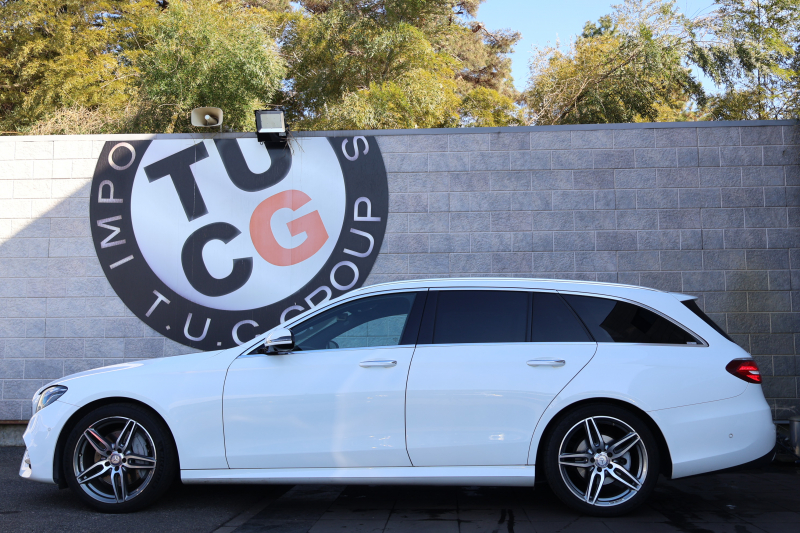 メルセデスベンツ Eクラス E220d ステーションワゴン AVG スポーツ レーダーセーフティPKG AMGスタイリングPKG 黒ハーフ革シート シートヒーター 純正ナビ地デジ 360°カメラ Applecarplay Android Auto 電動Rゲート フットトランクOP マルチビームLED 純正ルーフキャリア AMG19AW 2年保証