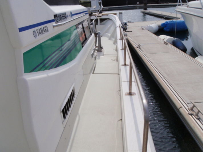 陸上保管で船底塗装が塗られて無い珍しいDX-40です。(今回海上展示の為船底塗装をしました。)エンジンもハイパワーで36ノットオーバー程度いいお買い得艇です。(入荷しました。広島ボートパーク展示)再生済 <オーニングテント新設取り付け・レーダー(コーデン液晶7インチ新設取り付け)