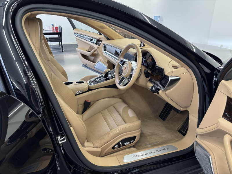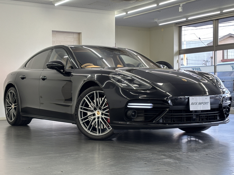 安心の正規ディーラー車、運転し易い右ハンドル!! 取説・記録簿付 もちろん事故歴ありません!! 人気の外装色ブラックにTurbo専用エクステリアや21インチ911ターボデザインホイール&レッドペイントブレーキキャリパー、LEDマトリックスヘッドライトがお洒落なエクステリアを演出!! 使用感はとても少なく室内はルクソールベージュレザーインテリアにダークウォールナットインテリアパッケージやシートヒーター&ベンチレーション、14Wayパワーシート(メモリー付)&便利な8Wayリアコンフォートシート&マッサージ機能、さらには4ゾーンエアコン&ステアリングヒーター、開放感あふれるパノラミックスライディングルーフや後席ドア/後席後方ロールアップサンシェードがオプション装備!! 高解像度12インチタッチスクリーンを採用したPCMナビ(ポルシェコミュニケーションマネジメントシステム)に希少なBurmesterハイエンド3Dサラウンドサウンドシステム、コンフォートアクセス&ソフトクローズドアが完備!! 運転操作をサポートするナイトアシスト&ACC(アダプティブクルーズコントロール)&LCA(レーンチェンジアシスト)&LKA(レーンキープアシスト)&サラウンドビューカメラ付パークアシストシステムも完備!! ドライビングプレジャーを掻き立てるスポーツクロノパッケージに4L V型8気筒ターボエンジン&4WDシステム&PASM付アダプティブエアサスペンション、さらにはリアアクスルステアリング(4輪操舵)により言葉に尽くせないドライビングの醍醐味を堪能することができます!! 相反する要素の融合を高い次元で実現したパナメーラ!! お探しの方、お急ぎ下さい!!