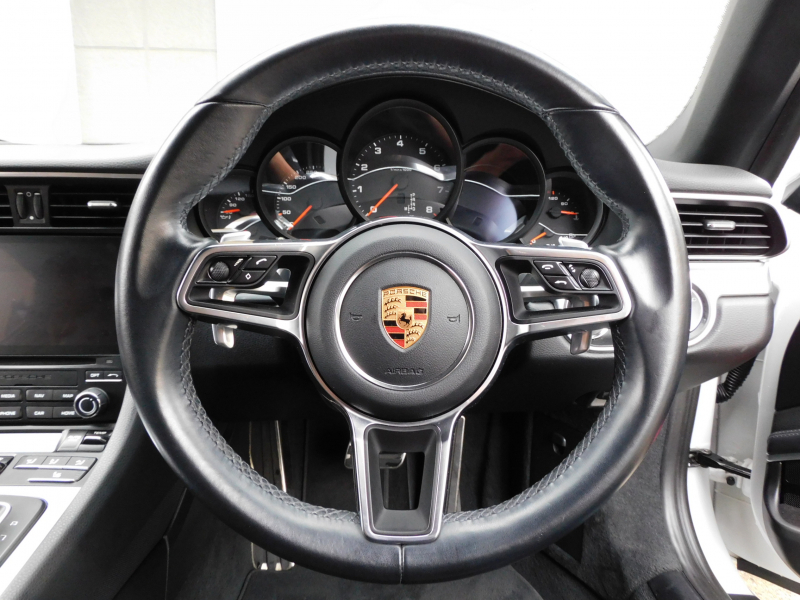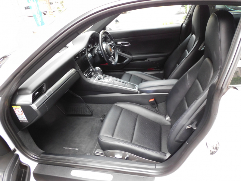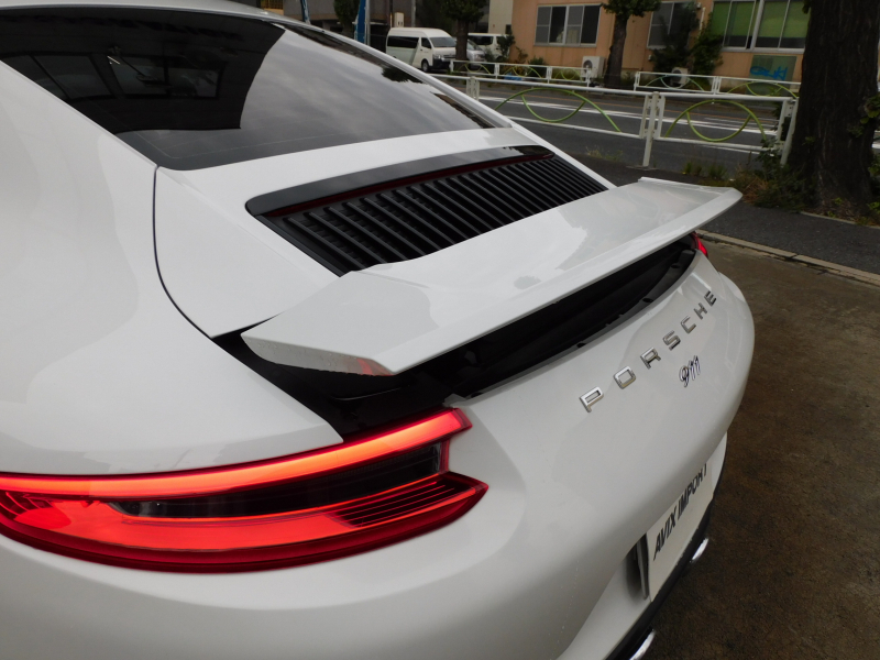 洗練された後期型!! 3L水平対向6気筒ツインターボエンジン搭載!! ワンオーナー 安心の正規ディーラー車!! 運転しやすい右ハンドル、7速PDK搭載!! 取説・記録簿付 もちろん事故歴ありません!! 綺麗な外装色ホワイトにオプションの20インチRSスパイダーデザインホイールが装備され迫力有るエクステリアを演出!! 使用感はとても少なく心地よい禁煙の室内は高級感漂うアルカンターラルーフライニングに落ち着いたブラックレザーシート&快適なシートヒーター&ステアリングヒーターが完備!! 運転操作をサポートするリアビューカメラ、夜間走行をサポートするバイキセノンヘッドライト(PDLS付)、便利なエントリー&ドライブシステム、電動可倒式ドアミラーが装備!! 後期型より採用された高解像度7インチタッチスクリーンを採用したPCMナビ(ポルシェコミュニケーションマネジメントシステム)搭載!! ドライビングプレジャーを搔き立てるスポーツクロノパッケージ&スポーツエグゾーストに出力370ps(カタログ値)を発生する水平対向6気筒ツインターボエンジンとPASMが相まって卓越したパフォーマンスをご堪能できます!! 後期型911カレラをお探しの方は是非お急ぎ下さい!!
