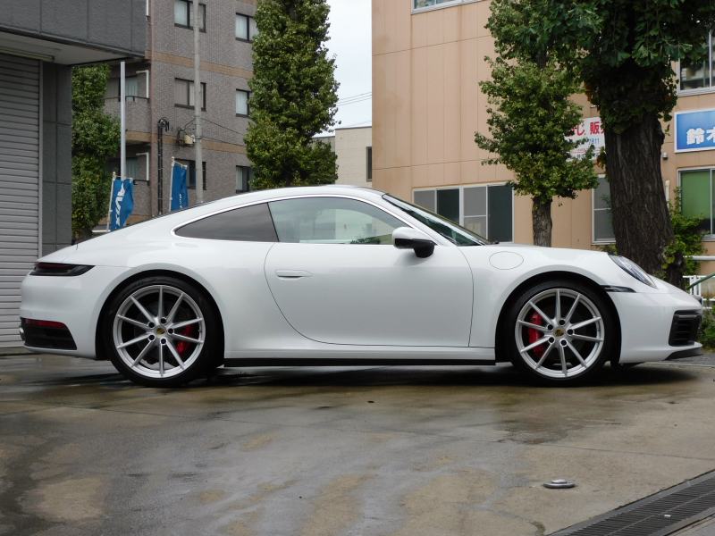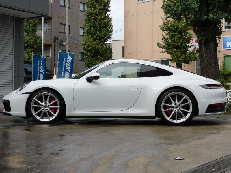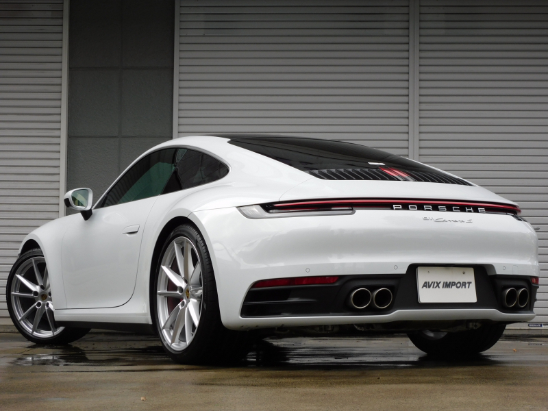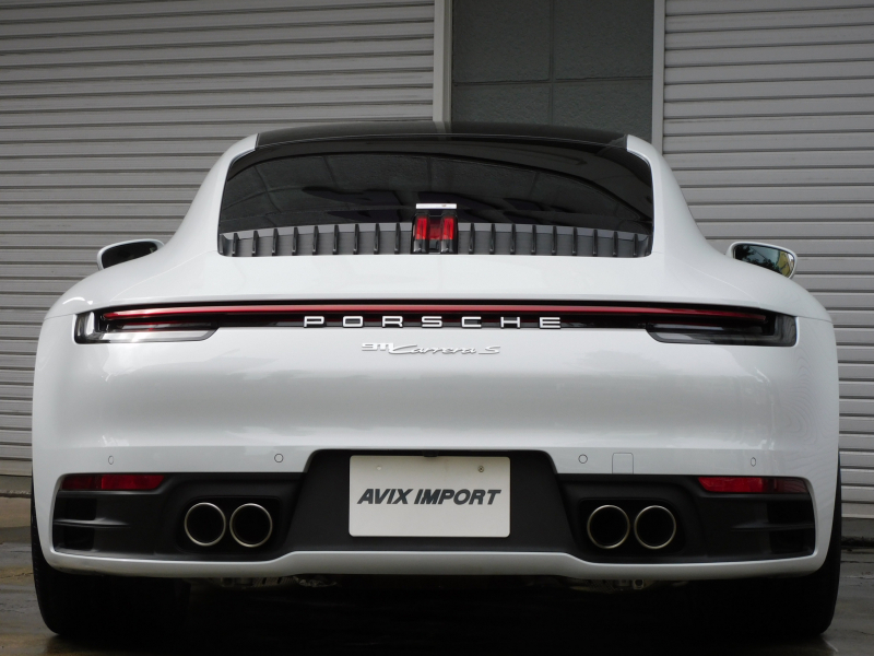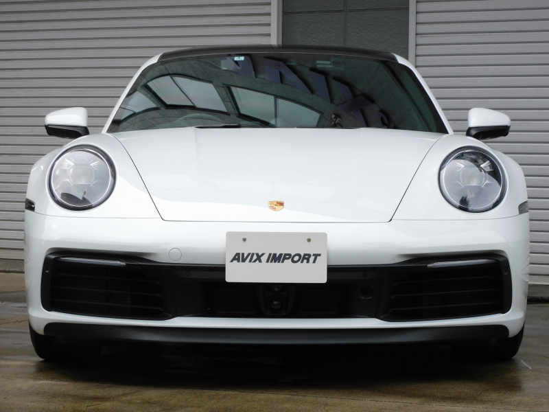 上級グレードS!! 3L水平対向6気筒ツインターボエンジン搭載!! 安心の正規ディーラー車!! 運転しやすい右ハンドル、8速PDK搭載!! 取説・記録簿付 もちろん事故歴ありません!! 綺麗な外装色ホワイトに希少なカーボンルーフ、20/21インチカレラSホイール&レッドペイントブレーキキャリパー、スポーツテールパイプ、マトリックスLEDヘッドライト(PDLSプラス付)が装備され迫力有るエクステリアを演出!! 心地よい禁煙の室内はアルカンターラルーフライニングに鮮やかなブラック/ボルドーレッドツートンレザーインテリア&マットカーボンインテリアの組み合わせ!! 加えて快適な18Way電動アダプティブスポーツシート(メモリー付)、シートヒーター&ベンチレーション、GTスポーツステアリング(ヒーター付)、高級感漂うエンボス加工ヘッドレスト、お洒落なホワイトメーターパネル付!! 運転操作をサポートするサラウンドビューカメラ付パークアシストシステムにACC(アダプティブクルーズコントロール)、LCA(レーンチェンジアシスト)、ナイトビューアシスト、便利なコンフォートアクセスや電動可倒式ドアミラー付!! 高解像度10.9インチタッチスクリーンを採用したPCMナビ(ポルシェコミュニケーションマネジメントシステム)搭載!! フロントアクスルリフトシステムがオプション装備され縁石やスロープなどで地面との接触を回避できストレスの無い走行が可能となり、ドライビングプレジャーを掻き立てるスポーツクロノパッケージ(ホワイトクロノ)に出力450ps(カタログ値)を発生する水平対向6気筒ツインターボエンジン&PASMやPTVプラスが相まって卓越したパフォーマンスをご堪能できます!! 911(Type992)カレラSをお探しの方は是非お急ぎ下さい!!