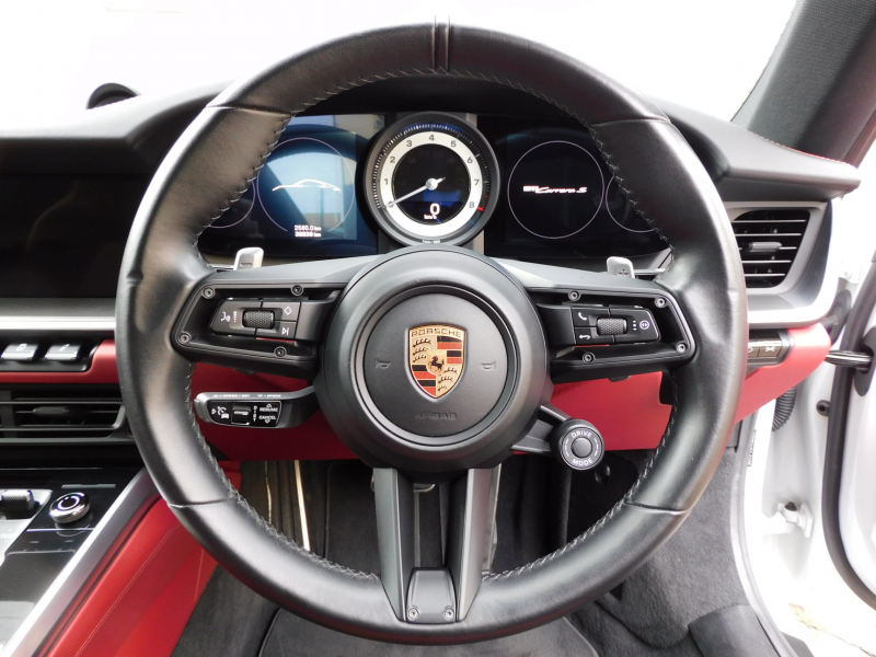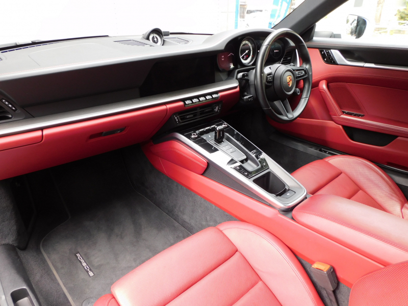ポルシェ 911(Type992) カレラS 右H正規D車 水平対向6気筒ツインターボ 8速PDK カーボンルーフ スポクロ(ホワイトクロノ) マットカーボンインテ 赤革 Sヒーター&クーラー PCMナビ 全周C&PAS ACC&LCA&ナイトビュー LEDマトリ(PDLSプラス付) コンフォートA Fアクスルリフト PASM&PTVプラス 赤キャリパー 純正20/21AW 禁煙