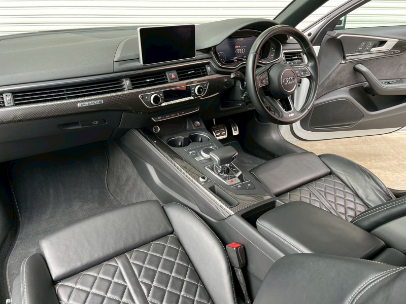 取説・記録簿付 事故歴ありません!! 綺麗な外装色グレイシアホワイトに専用エクステリア&純正18インチアルミホイール&レッドペイントブレーキキャリパー、マトリクスLEDヘッドライトが装備され迫力有るエクステリアを演出!! 室内の使用感は少なくスポーティなS4専用インテリアにブラックナッパレザーシートや快適なシートヒーター&3ゾーンエアコン付!! アシスタンスPKGならではのサラウンドビューカメラが装備されアクティブレーンアシスト&ACC(アダプティブクルーズコントロール)が運転操作をサポートし見やすいバーチャルコックピットがオプション装備!! 便利なMMIナビ・Bluetoothオーディオ・スマートフォンインターフェイス・ETC・TVチューナー完備!! V型6気筒ターボエンジンに8速ティプトロニックが快適なドライビングを実現!! 実用性と先進性を兼ね揃えた人気車輌をお届け致します!!