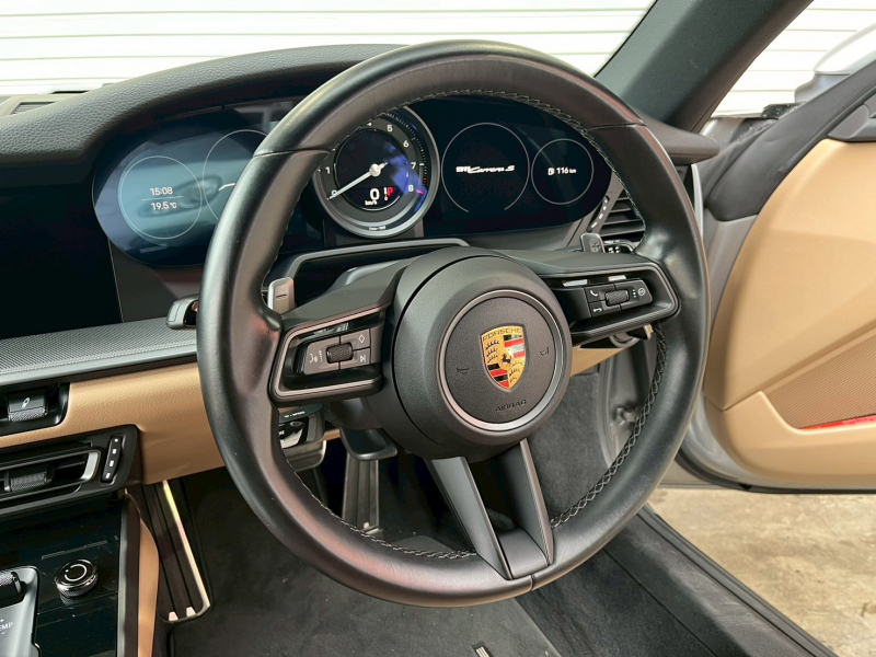 ポルシェ 911(Type992) カレラS 右H正規D車 水平対向6気筒ツインターボ 8速PDK ベージュ革 シートヒーター PCMナビ(10.9インチ) 全周C&PAS クルコン LEDヘッドライト 電格ミラー スポーツエグゾースト PASM&PTVプラス 赤キャリパー 純正20/21インチAW 禁煙