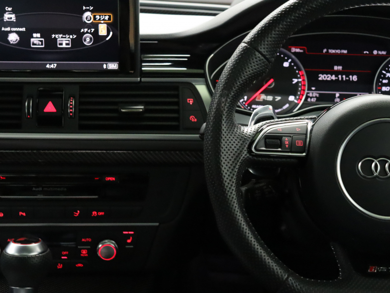 アウディ RS7 スポーツバック ブラックスタイリングPKG 後期モデル 黒革 スポーツシート サンルーフ アルカンタラルーフ MMIナビ TV BOSEサウンド Bカメラ Carplay マトリクスLEDヘッドライト カーボンインテリア&ミラー レッドキャリパー RSスポーツエキゾースト 純正21インチAW 2年保証