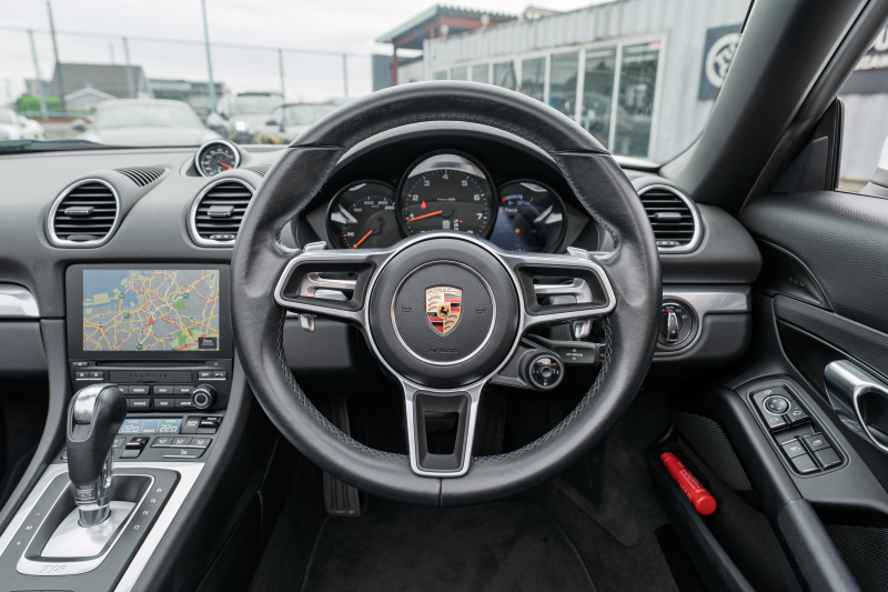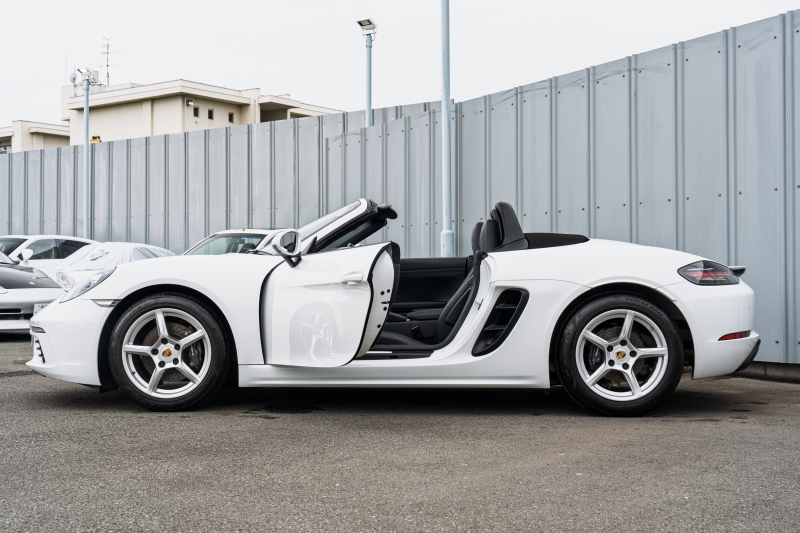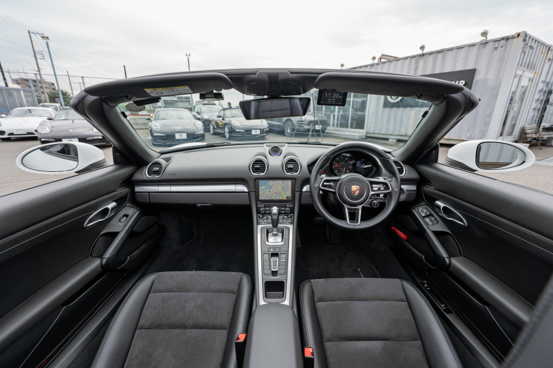 ポルシェ 718 ボクスター ベースグレード スポーツクロノPKG ブラックハーフレザーシート シートヒーター ブラックソフトトップ PCMナビ CarPlay キセノン オートエアコン TPM パークアシスト 電格ミラー ボクスター18インチAW 2年保証