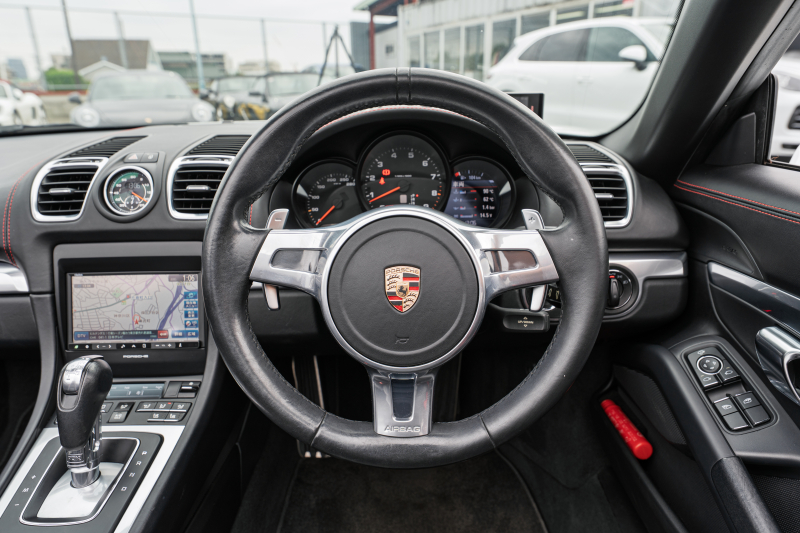 ポルシェ ボクスター(Type981) ベースグレード スポーツクロノPKG ブラックレザーインテリア シートヒーター&ベンチレーター レッドソフトトップ ナビTV スポーツデザインステアリング PDLS ボクスター18インチAW 2年保証