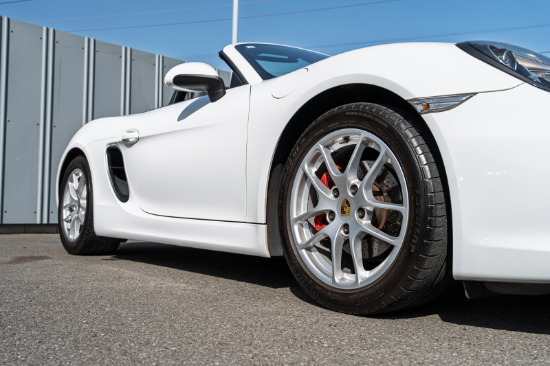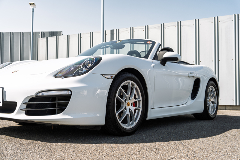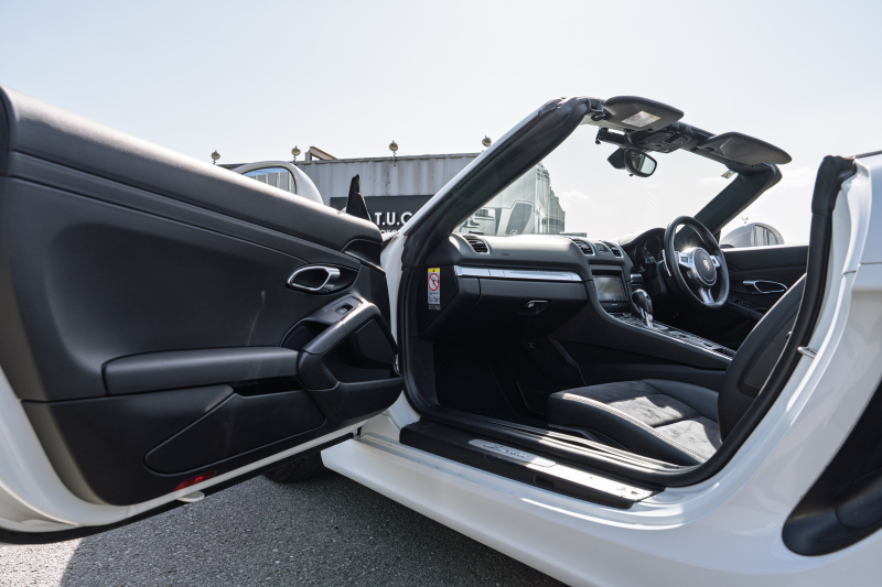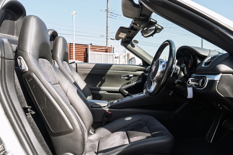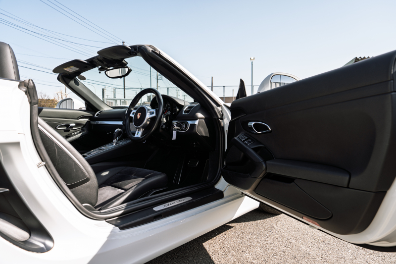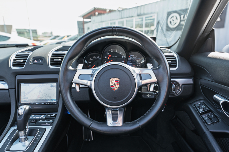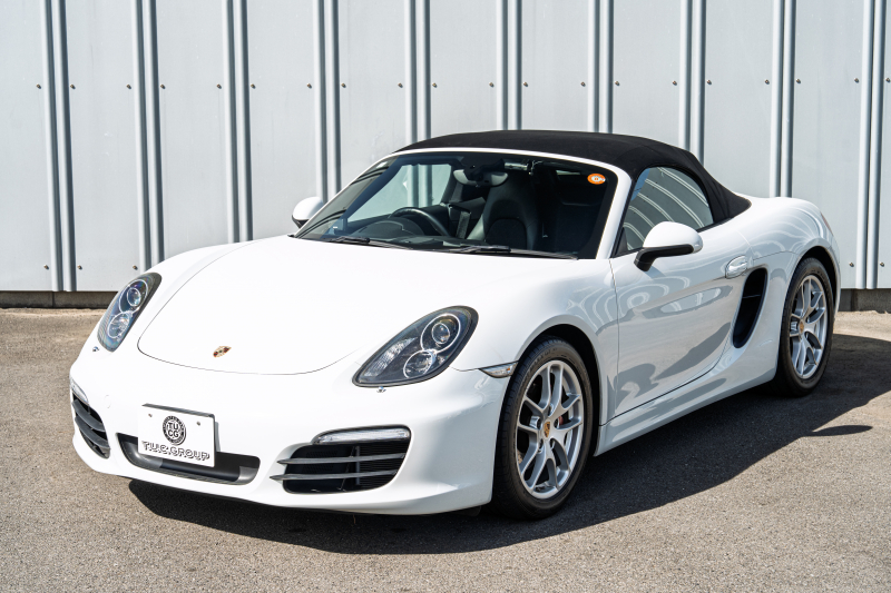 ポルシェ ボクスター(Type981) ベースグレード ブラックハーフレザー ブラックソフトトップ ナビTV スポーツデザインステアリング PDLS オートA/C 電動Dミラー ケイマン18インチAW カラークレストセンターキャップ 2年保証