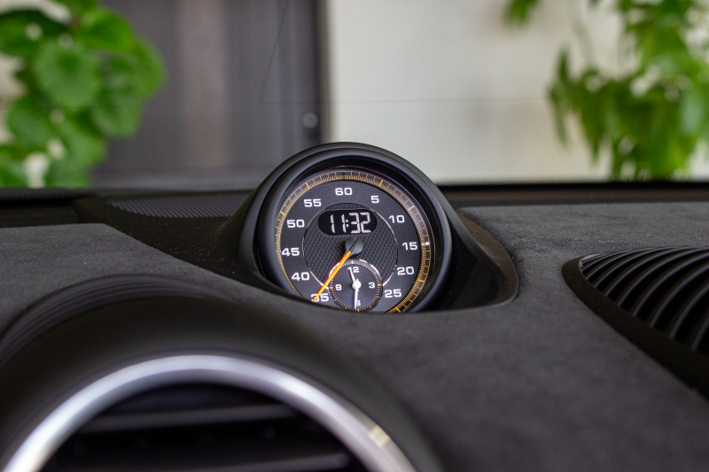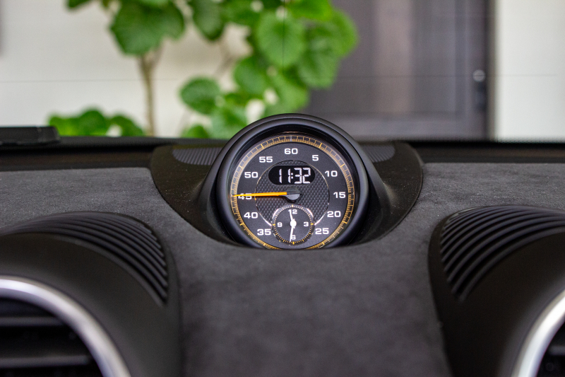 ダッシュボード上に専用ストップウォッチを備え、ラップ計測機能を追加。スポーティな雰囲気を高め、ドライバーの走行意欲を刺激する。