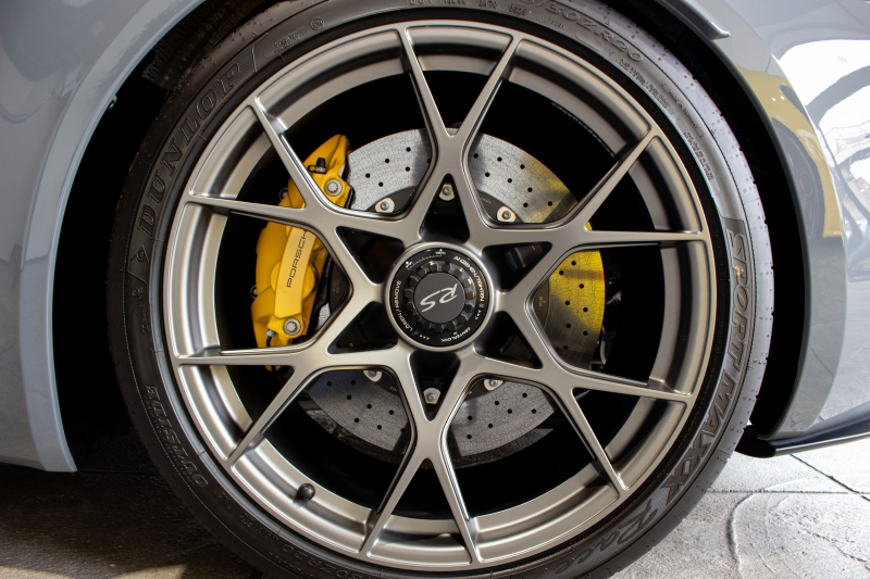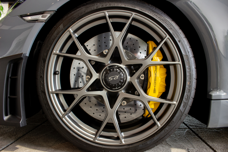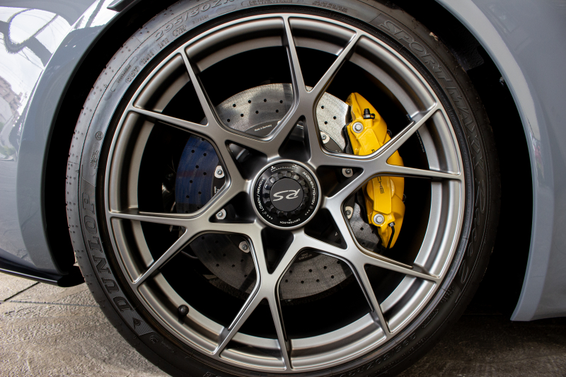 高温下でも安定した制動力を発揮。カーボンセラミックディスクは軽量かつ耐摩耗性に優れ、ゴールドキャリパーは所有者のステータスを象徴する。