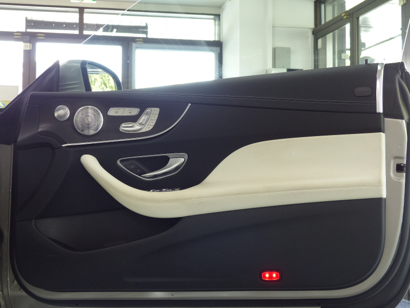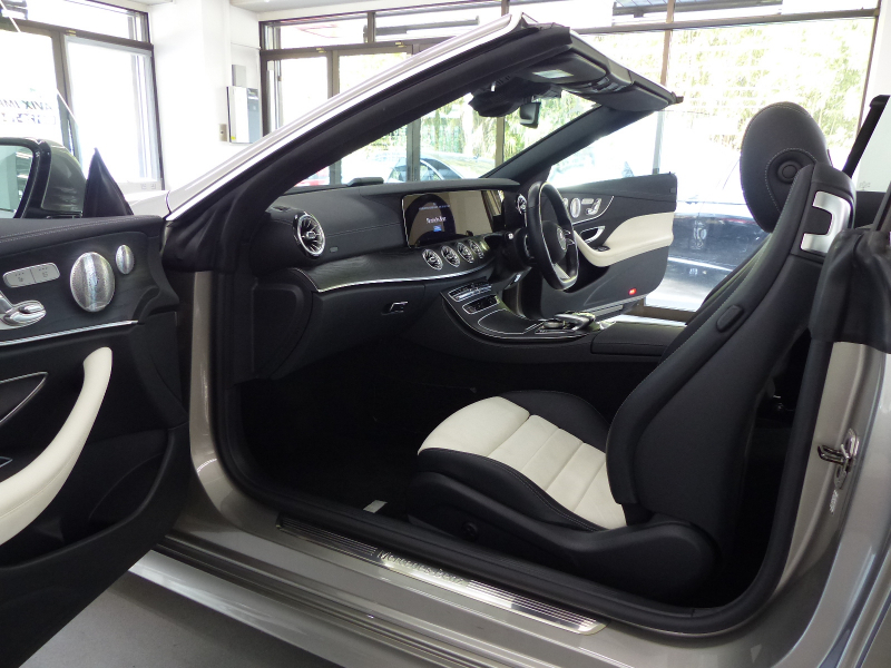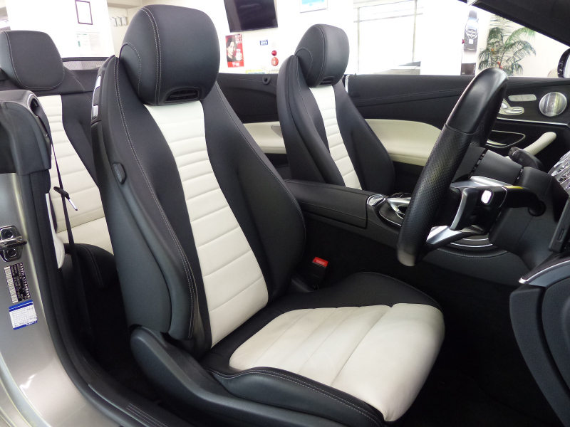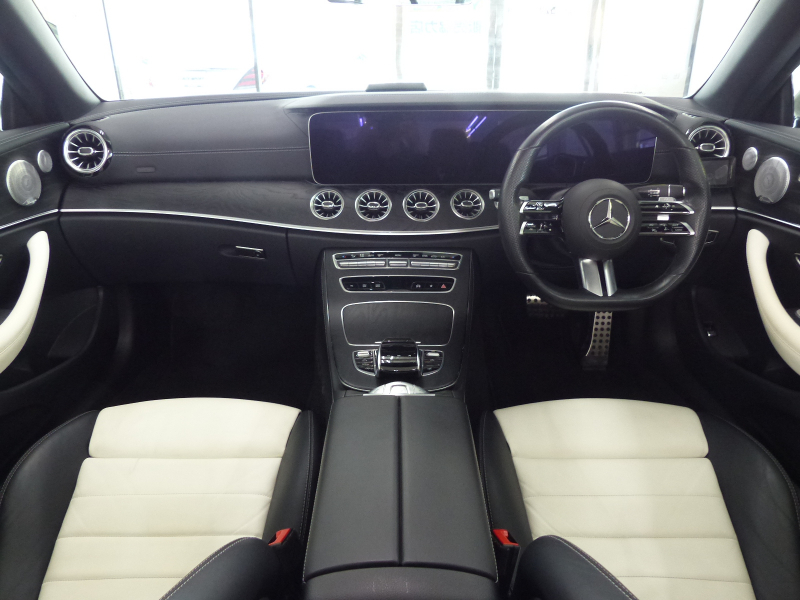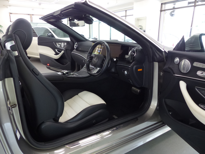 メルセデスベンツ Eクラス E200カブリオレ Sports 後期型 レザーPKG RSP 白黒ナッパ革 黒幌 MBUXARナビ地デジ360度カメラ Newステアリング Meコネクト HUD Burmester エアバランスP 前席Sヒーター&エアスカーフ マルチビームLED Pアシスト ウルトラハイビーム ACC レーンチェンジ AMGエアロ&19AW 禁煙