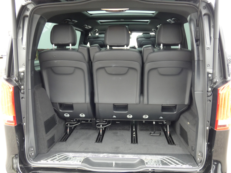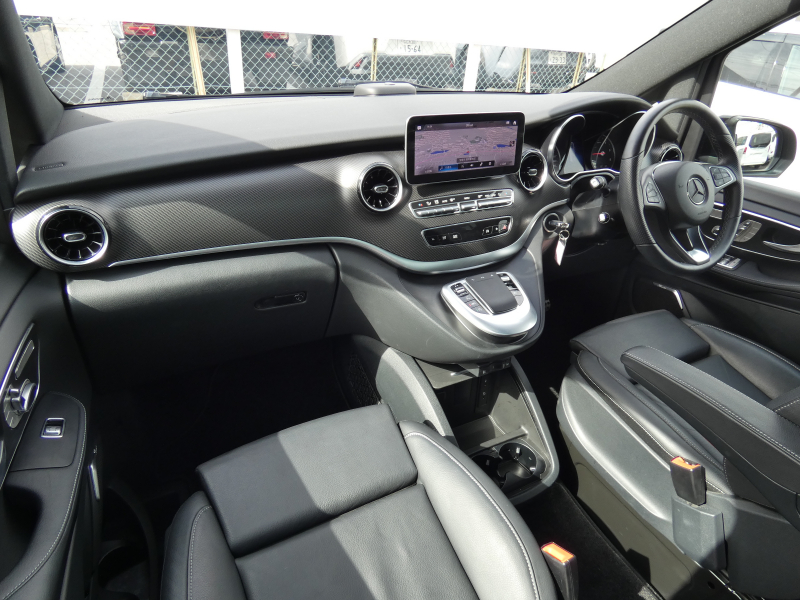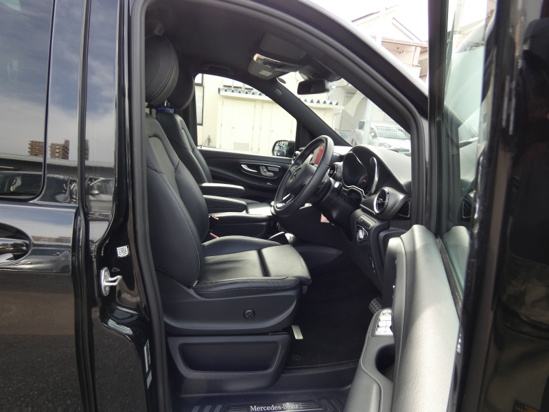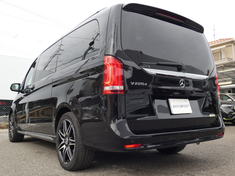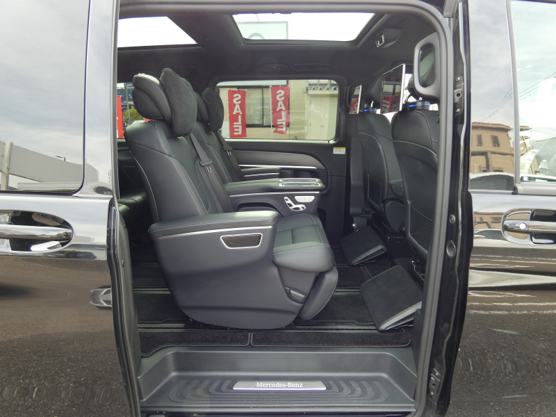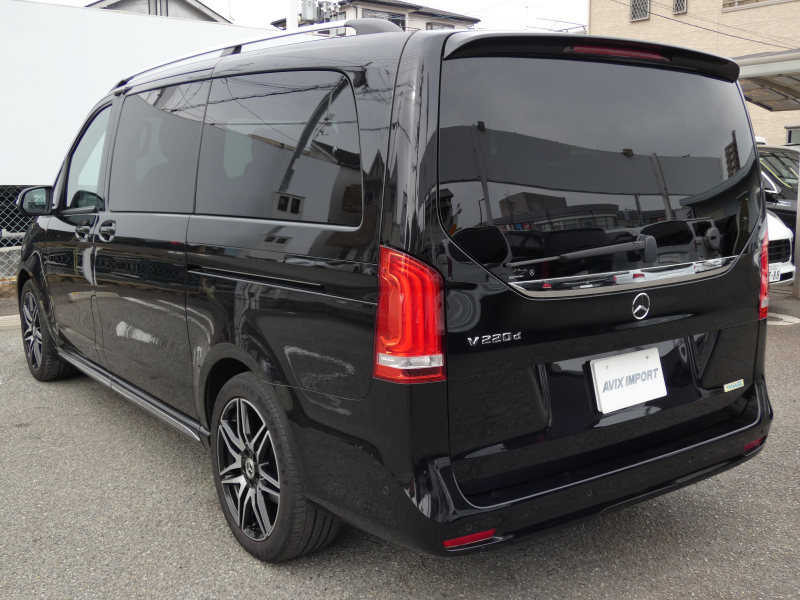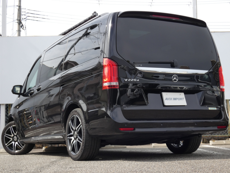 メルセデスベンツ Vクラス V220d AVGロング AMGライン 9速AT RSP パノラマSR エクスクルーシブシートPKG ブラック革 シートヒーターベンチレーション ヘッドレストツインモニター LED 純正MBUXナビ地デジ 360°カメラ Brumester リアエアコン 純正19AW 7人乗 禁煙 1オナ 正規D車 新車保証継承