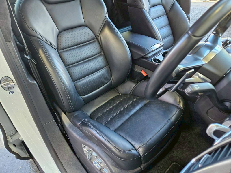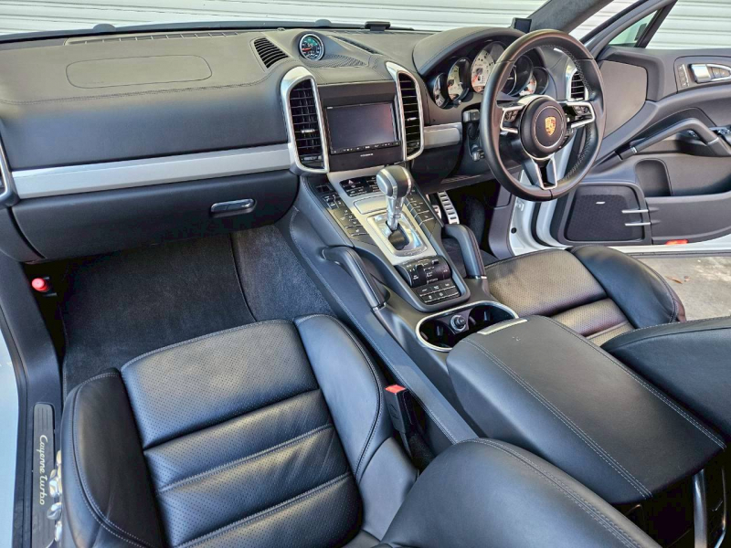 安心の右ハンドル、正規ディーラー車!! 取説・記録簿付 もちろん事故歴ありません!! 綺麗な外装色キャララホワイトメタリック!! ターボ専用エクステリアに21インチ911ターボデザインホイール&ホイールアーチエクステンションにレッドペイントブレーキキャリパー、さらにはLEDヘッドライト(PDLSプラス付)が装備され迫力有るエクステリアを演出!! SUV特有の使用感はとても少なく室内は高級感あるブラックレザーインテリア!! 上級グレードならではの18Wayメモリー付アダプティブスポーツシート、全席シートヒーター、ステアリングヒーター、BOSEサウンドシステム、パークアシストシステム、オートマチックテールゲート、PASM付エアサスペンションが標準装備され、スポーツクロノパッケージなど上級グレードに相応しい豪華装備満載!! 520馬力を発生するV型8気筒ツインターボエンジン&PASMエアサスペンションが相まって言葉に尽くせないドライビングの醍醐味を堪能することができます!! 安心の正規ディーラー車、958後期型Turboをお探しの方は是非お急ぎ下さい!!
