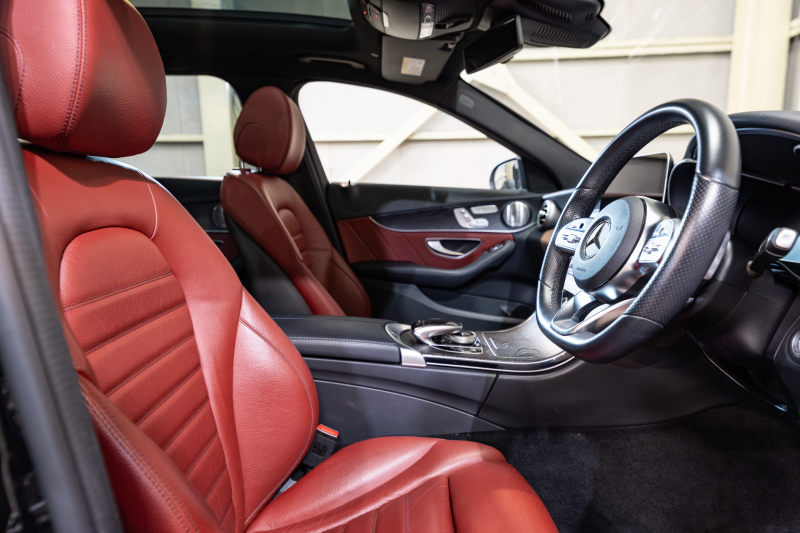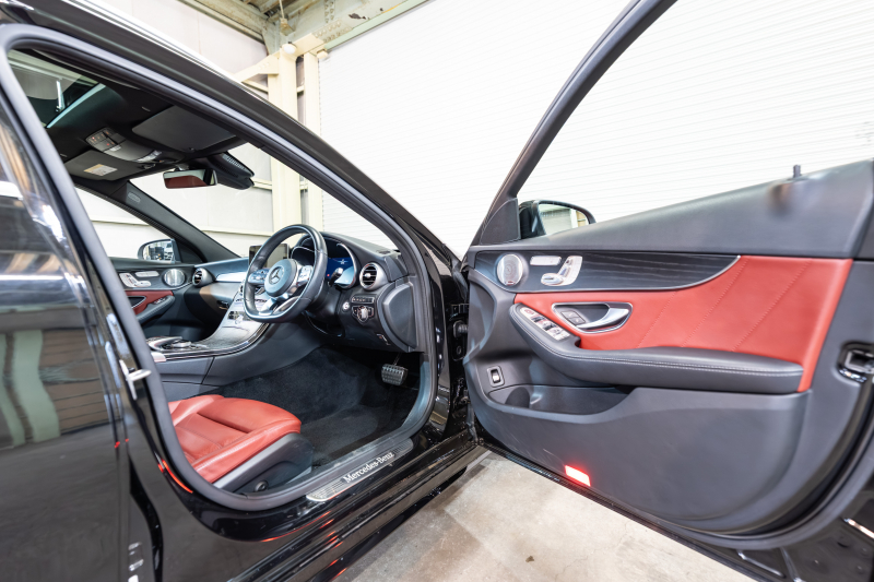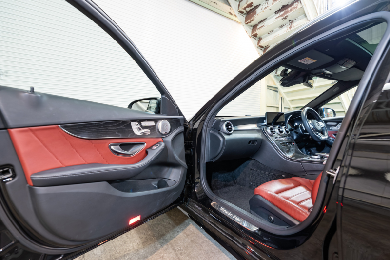 メルセデスベンツ Cクラス C200 ワゴン レザーEXC&レーダーセーフティPKG 後期 赤革 サンルーフ シートヒーター 純正ナビ フルセグTV ブルメスター CarPlay ヘッドアップD Bカメラ マルチビームLED AMGエアロ&18インチAW 2年保証
