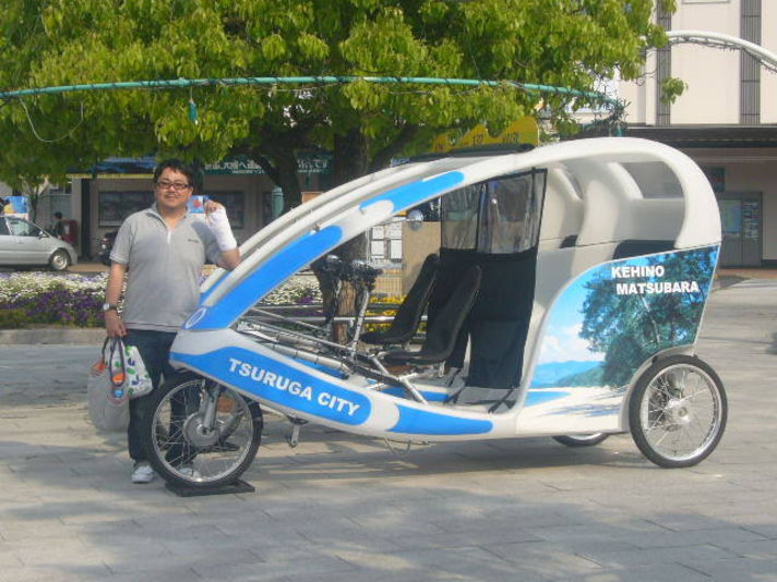 次の写真は敦賀駅にあった人力自転車 これなら私もこけず骨折しないと思います(笑)