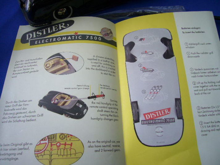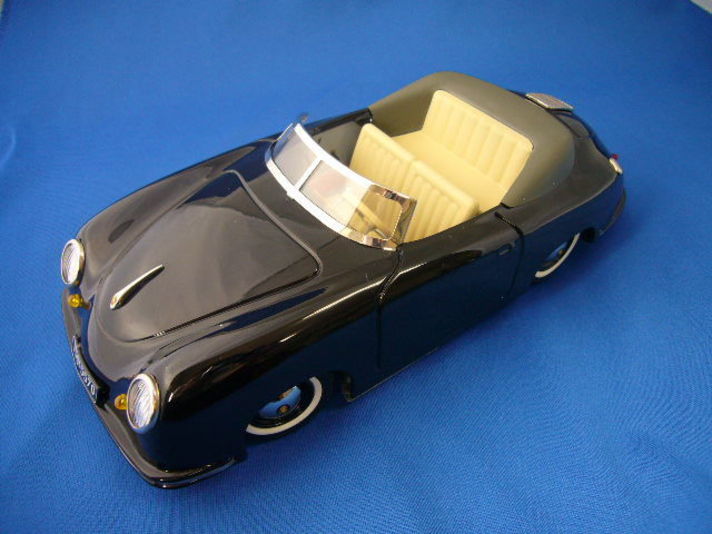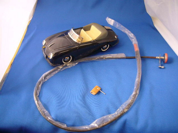 ポルシェデザイン ドライバーズセレクションの中に紹介されている 商品が以前から少し気になっているの物があり ポルシェセンターに 取り寄せして頂いたのが写真の商品です(ポルシェセンター北大阪H様はミニカーマニアです) 大きさは18分の1のブリキの356です 中々これが味わいのある商品で 写真の中に写っている小さな皮にボーが付いているのがキーで これを差し込むと電源がはいり 写真の黒いワイヤーの物を ハンドルとシフトレバーに装着して右左前後に自分で運転が出来ます 今は何かとラジコン&赤外線で動かす玩具が多い中 アナログな感じが 車体の356と物凄くマッチングすると思いませんか こんな時代なのでクレヨンの空冷ポルシェいかがですか少し宣伝(笑) |