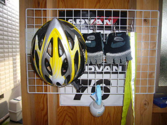 最近人力バイクに乗る事が日課になっている私 そこでガレージに人力バイクに乗るときの安全装備を保管するところを作ってみました