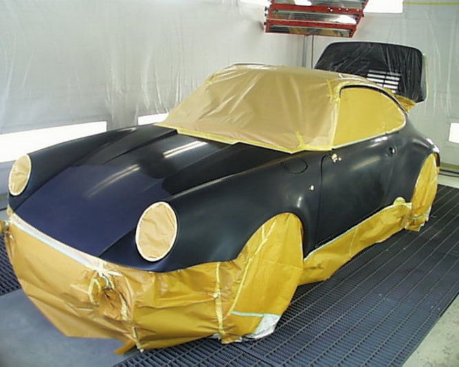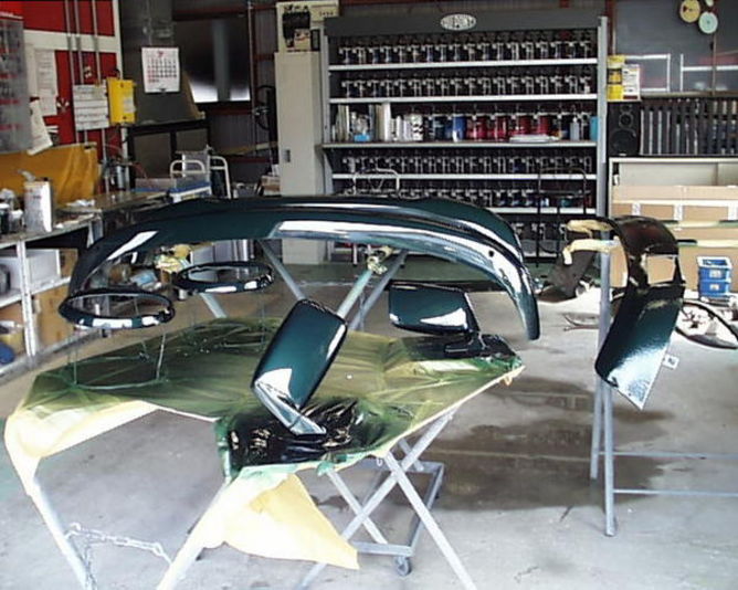 この作業は 当然全て手作業でキズやエクボなどをひろい修正して塗装をしていきます(約四週間かかります) 写真のように外れるパーツは個別で塗装していきます