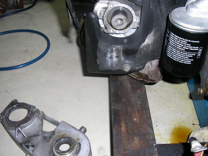 パワーステアリングの油圧ポンプを駆動する、カムシャフトのエンドシール交換、Oリング交換、微妙ですが、オイルの滲み発見交換しました。