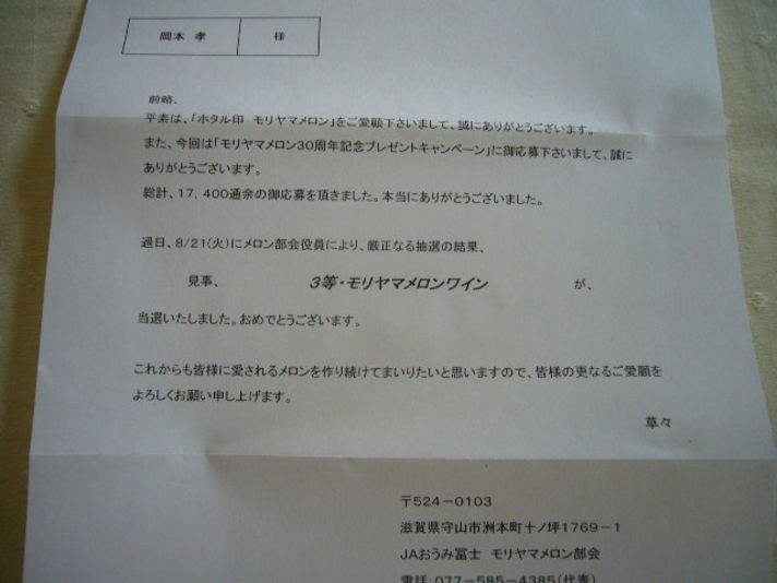 なんと.めったに懸賞に応募しない嫁が 送ったモリヤマメロン30周年記念に