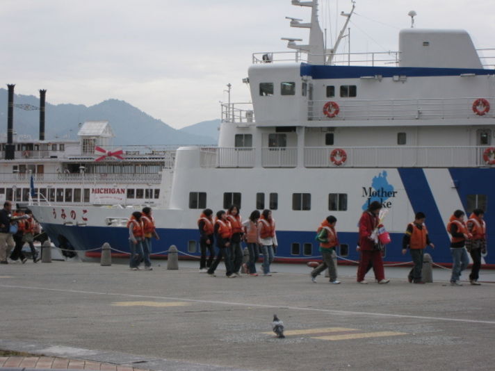 昨日の私の休みは家の近くの浜大津港で家内と散歩をして映画を見ていました ロッテリアでコーヒーを買い お菓子を買って港の公園でのんびりしていると びわこ観察船から(海の子) 小学生がぞろぞろと降りてきました