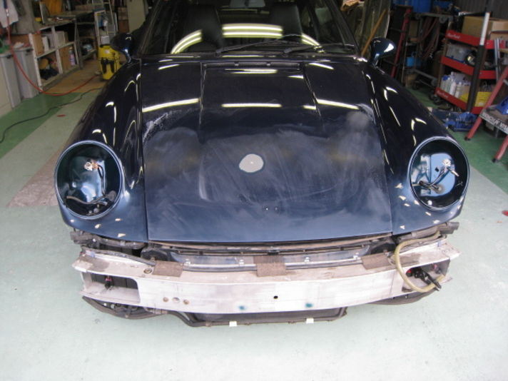 まずは バンパーを外し傷の入っている所を修理 ライトの下の部分 カエル目964のフロント周りで 1番多く飛び石をもらうところを補修します