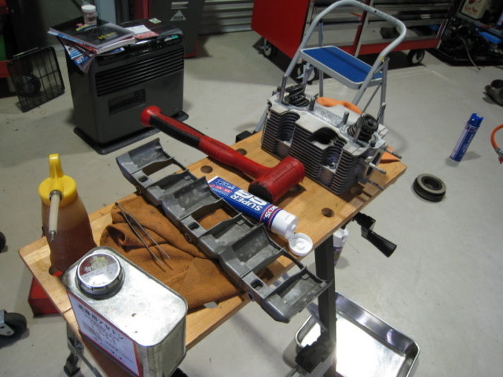 そして ヘッドに排気と吸気のバルブとスプリングを組み込み シリンダーの上にはめ込んで行きます