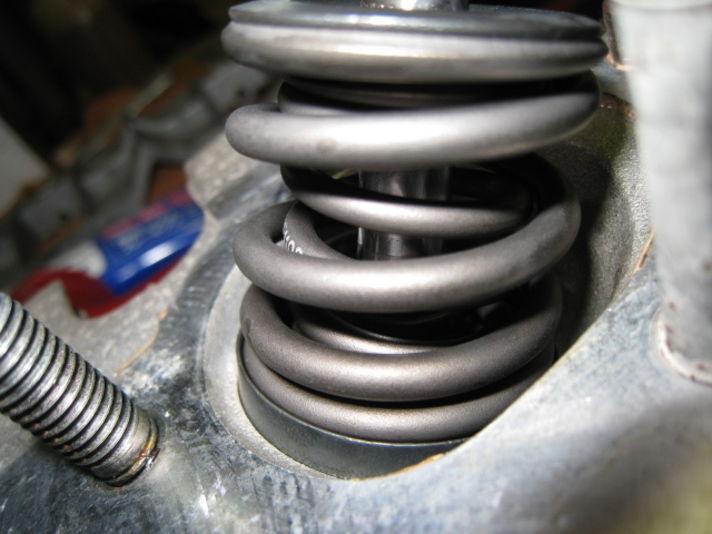 一つのバルブに二つのスプリングが組み込まれいます これは高速で上下した時のサージングを押えるための工夫でです 二つのスプリングの巻き方が内と外の物では逆になっています これを考えた人凄いですね簡単な原理でも答えを見れば解りますが 考えるのはとても大変なことです
