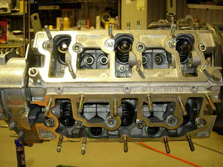 バルブタイミング調整、左右の各バンクのカムシャフト位置を決め、カムハウジングが載せられ、ロッカーアームを組み込み、バルブとロッカーアームのクリアランスを調整します。エンジンの回り方にも重要な作業になります。