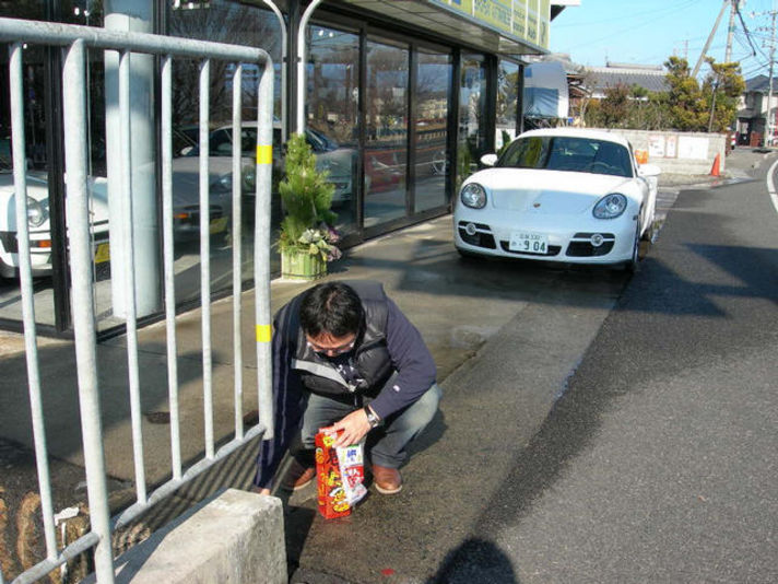 私は毎年元旦に ガレージクレヨンに出向き恒例のお酒と塩を店の
